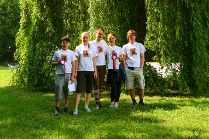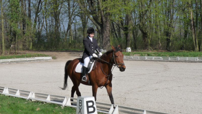 Trenujący w naszej stajni juniorzy Adrianna Kowalik, Aleksandra Kita, i Marcin Iwaniec oraz junior młodszy Paweł Sanecki uczestniczą w tym roku w Pucharze Lewady czyli w serii zawodów towarzyskich w ujeżdżeniu (http://www.kjlewada.pl/index.php?artykul=puchar_2011.html). Juniorzy młodsi startują w konkursie L-3, w którym m.in. wykonują koła w kłusie i galopie, muszą precyzyjnie pokazać przejścia pomiędzy chodami oraz zrobić żucie z ręki. Juniorzy rywalizujący w konkursie P-2 dodatkowo są oceniani za chody pośrednie i ustępowania od łydki. Zawodnicy startują na koniach organizatora. Ola i Marcin zaliczyli udany debiut na zawodach odbywających się 21.05, uzyskując: Ola na Japonce 57,2%, Marcin na Bellabiance 55,4%. Ada i Paweł uczestniczyli we wszystkich zawodach składających się na pucharowy cykl (16.04, 21.05 oraz 18.06) i plasują się w czołówce. Ada dwukrotnie wygrywając konkurs a raz będąc trzecia jest aktualnie w ogólnym rankingu juniorów na drugiej pozycji. Uzyskała: na Bellabiance 56,4%, na Bajce 61% a na Demeter 61,6%. Paweł w klasyfikacji juniorów młodszych zajmuje trzecie miejsce. Podczas pierwszego konkursie był trzeci a w drugiego – drugi. Uzyskał na Lizie 58,64%, na Nurcie 59,32% oraz na Filipie nieco ponad 55%. Ostatnie zawody w ramach Pucharu Lewady odbędą się jesienią. Trzymajmy kciuki za Naszych Jeźdźców. A już teraz gratulujemy sukcesów Adzie i Pawłowi oraz udanych debiutów Oli i Marcinowi.