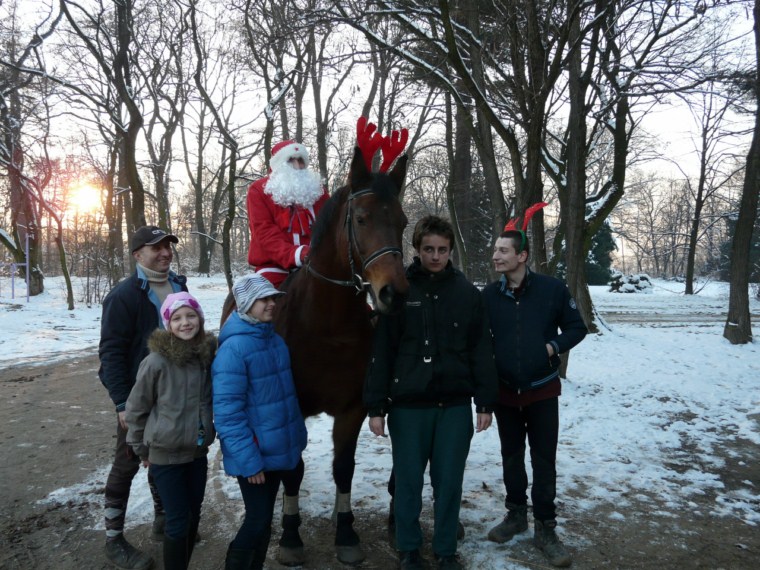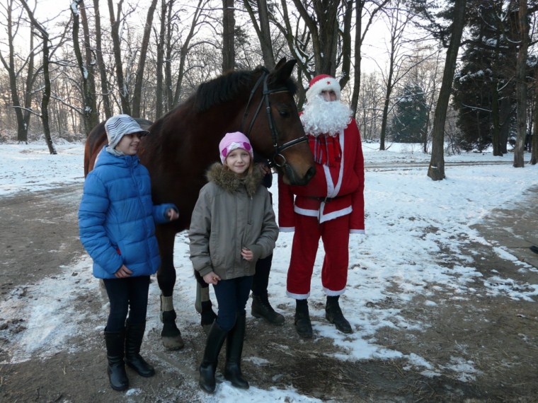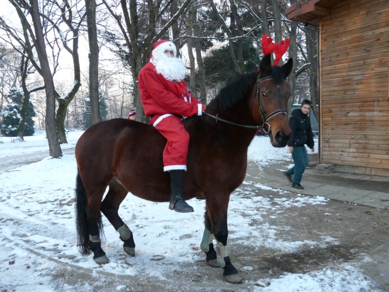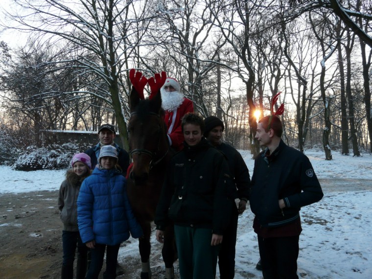 Święty Mikołaj zawitał 6 grudnia także do StadNinki. Już rano widziano go jak dreptał niecierpliwie z prezentami pod drzwiami stajni. Później pojawiał się jeszcze kilkakrotnie w ciągu dnia rozdając słodycze. Niektórym wręczał je osobiście, innym podrzucał tak, że nie mogli się nawet zorientować, kiedy zostali obdarowani. Było przy tym mnóstwo radości i zabawy. Niespodziewanie okazało się również, że mamy w stajni… renifera! Mikołaj wolał jednak od sani jazdę wierzchem. Zapraszamy do oglądania zdjęć.