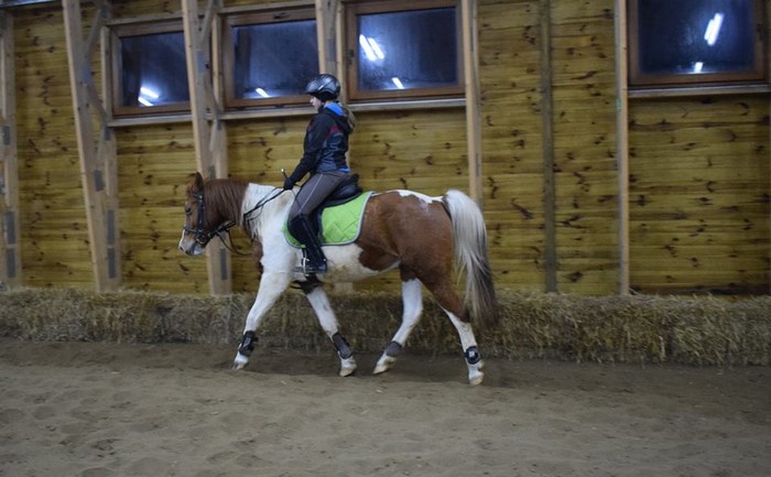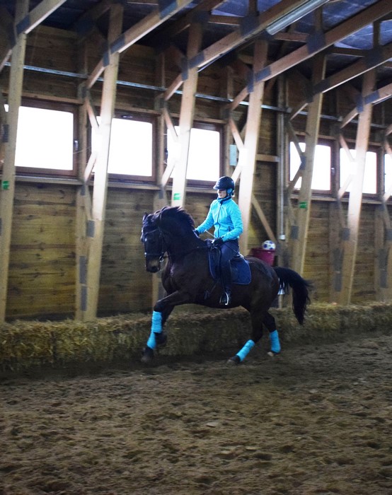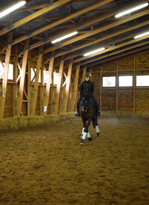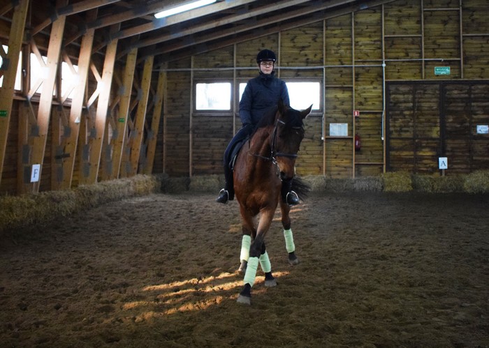 Poprzez treningi ujeżdżeniowe dbamy więc o kondycję naszych koni. Dzięki nim stają się rozluźnione, współpracujące, przekazujące dobry wzorzec ruchu. To bardzo ważne szczególnie dla koni, które pracują z dziećmi i służą w hipoterapii.